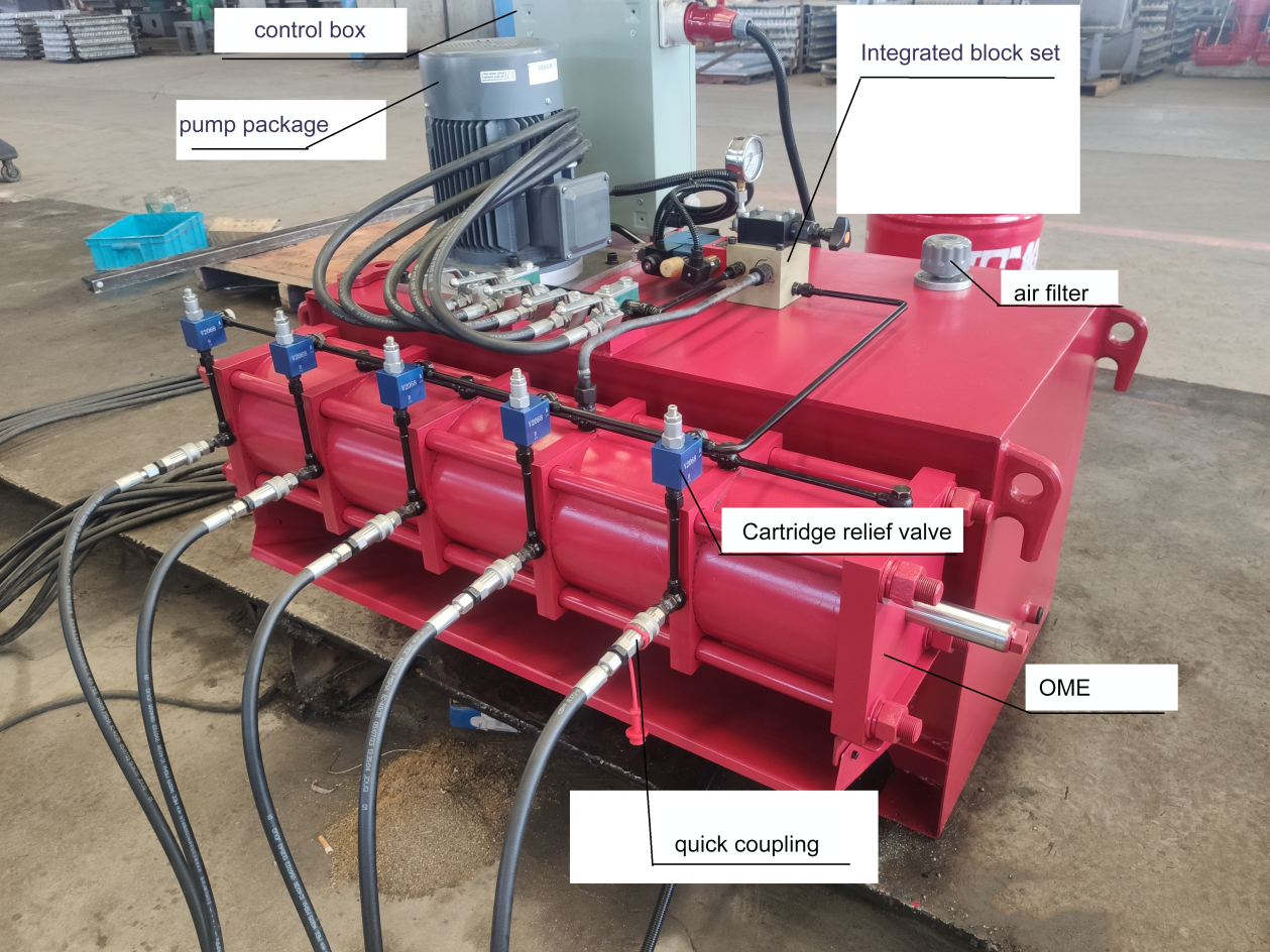 4, Each hydraulic cylinder has a safety valve self-locking, equipment operation will not cause the tank or heavy objects to slide or fall due to power failure, the blasting of a high-pressure hose or the failure of a hydraulic cylinder, hydraulic jacking process is safe and reliable.