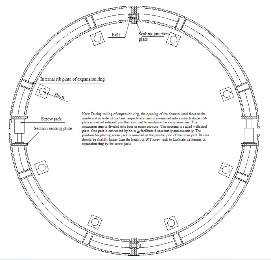 5. The hydraulic pump station and the hydraulic hoist are placed in the tank for easy operation. Finally, a door-closing plate is reserved to move the equipment out of the storage tank, and the door-closing plate is group welded well.